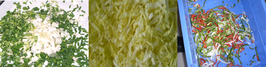 Use: each vegetables such as celery, cabbage, Korea: vegetables, spinach, onions, garlic, melons and other materials into tablets, filiform, suitable for food processing industry with automatic production line.