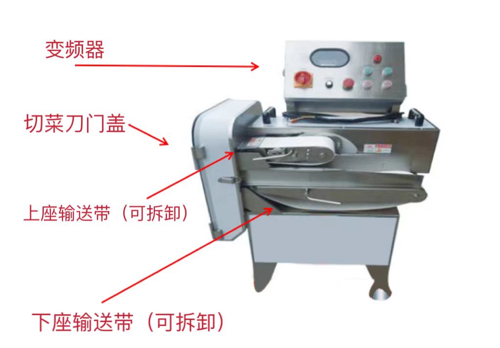 1、 使用前注意切菜機(jī)大刀的門(mén)蓋先鎖上環(huán)扣;勿將手伸入,亦勿將手有輸送帶隨菜送入;